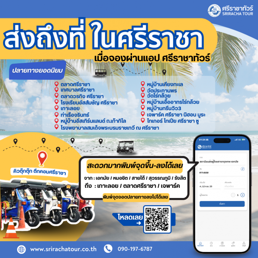 ไปส่งถึงที่ ในศรีราชา เมื่อจองผ่านแอป/เว็บ ศรีราชาทัวร์